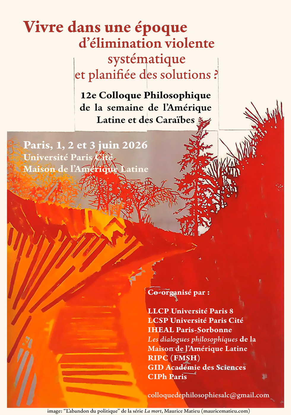Co-organizado por : LLCP Université Paris 8, LCSP Université Paris Cité, IHEAL Paris Sorbonne, Les dialogues philosophiques de la Maison de l’Amérique Latine, RIPC (FMSH), GID Académie des Sciences, CIPh Paris